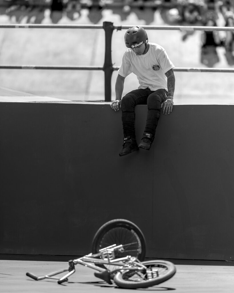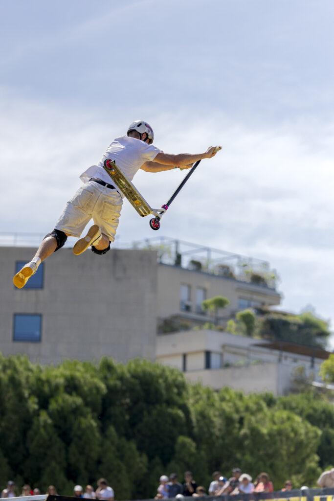 L’une de mes premières expériences au plus près des sportifs de haut niveau remonte à 2023, lorsque j’ai pu photographier les concurrents du FISE (Festival International des Sports Extrêmes). Ce festival se déroule sur les bords du lez à Montpellier. Dans le même temps, j’ai eu l’occasion de participer à des tests d’appareils photo organisés par un magasin spécialisé, en plein cœur du FISE, ce qui m’a permis d’expérimenter différents équipements et de mieux cerner celui qui serait idéal pour mon travail futur.