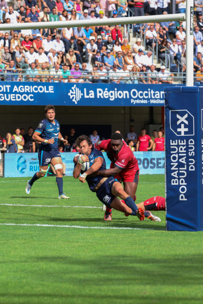 En juin 2024, j’ai eu le plaisir de fouler la pelouse du GGL Stadium pour photographier un match du Montpellier Hérault Rugby. Les images réalisées ont ensuite été utilisées par le service communication du club pour enrichir ses publications sur les réseaux sociaux, me permettant ainsi de voir mon travail diffusé auprès des fans du club.